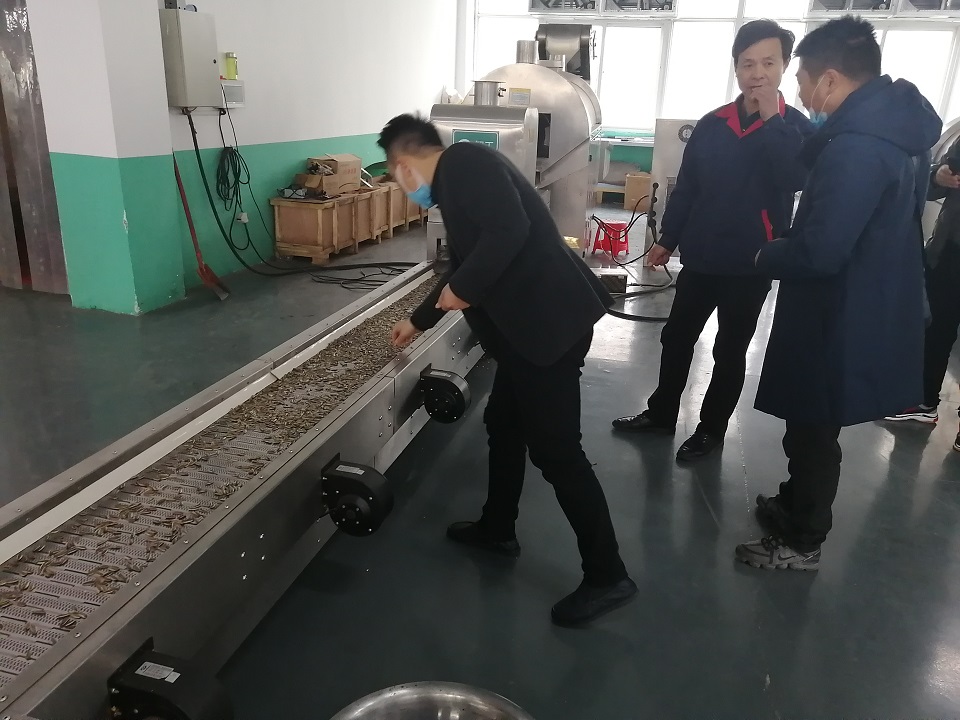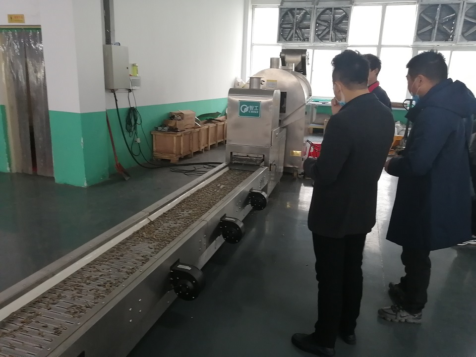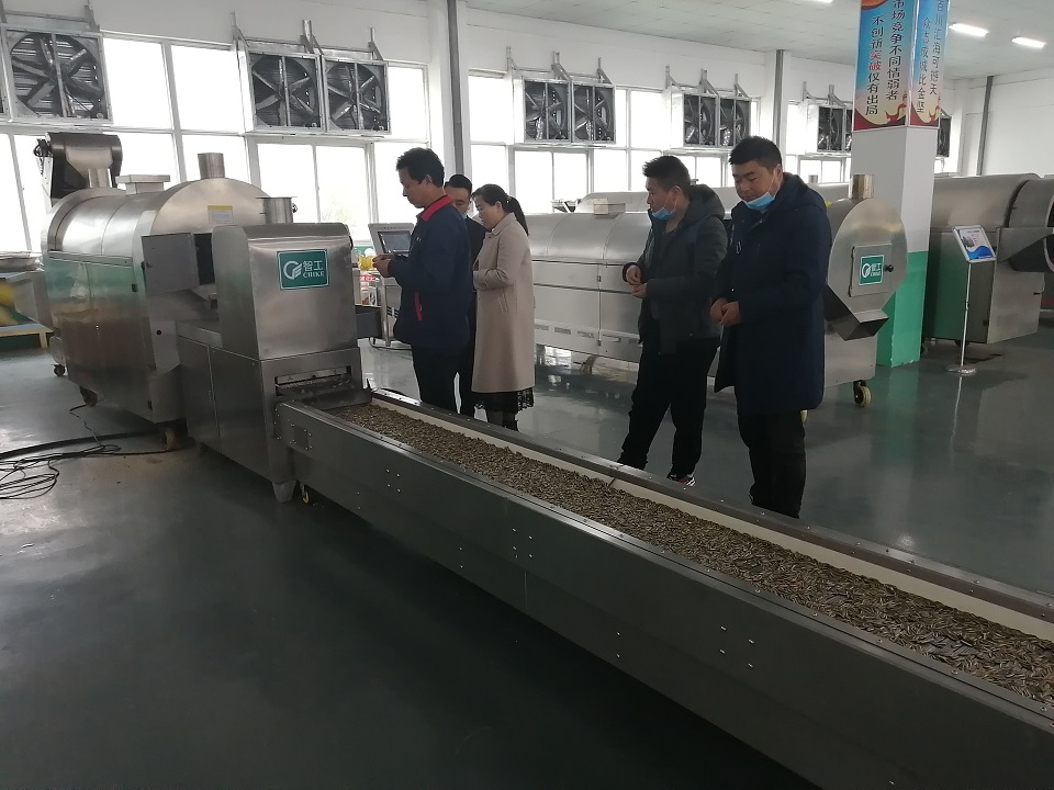 2020年11月19日,湖北客户一行两人亲自来到许昌智工考察参观,客户经过考察选定试机两米电磁炒货流水线,客户亲自试机炒制原味瓜子,出锅的瓜子色泽饱满,口感俱佳,经过品尝后客户对我厂电磁炒货设备表示了充分的肯定,并现场签订购机合同,订购两米全套电磁炒货流水线设备。