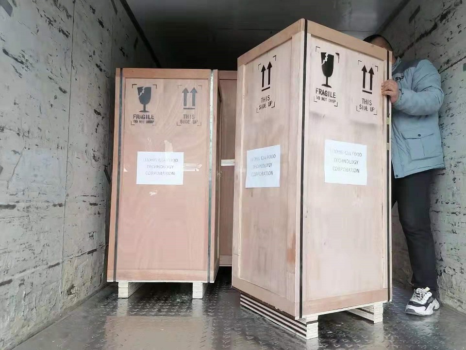 2020年12月08日,越南客户在许昌智工订购的两台DCCZ 7-10型电磁炒货机经过工作人员的试机包装等一系列工作开始装车发货。许昌智工电磁炒货机炒制五谷杂粮、干果、坚果、膨化食品和休闲食品的,自动化程度非常高,利用电磁感应锅体直接加热,升温快,温度高,食用盐等介质可不出锅循环翻炒,避免了热量流失,节能环保;强大的智能控温系统,控温精确,炒制过程中锅内温度始终保持一致,省时省力省人工,内置变频调节器,温度,转速,火力大小,均可随意调节,操作简单上手快,适合各种物料的炒制。
