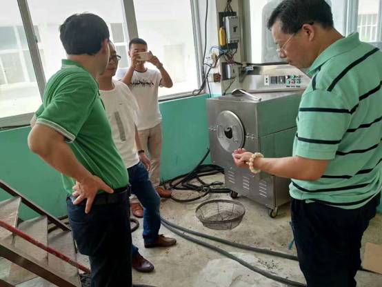 加拿大客户来许昌智工考察智能型多功能电磁炒货机!现场试炒澳洲进口坚果!